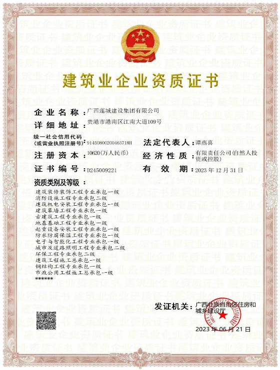 近日,集團(tuán)公司兩項(xiàng)資質(zhì)成功完成升級(jí)。經(jīng)廣西壯族自治區(qū)住房和城鄉(xiāng)建設(shè)廳批準(zhǔn),廣西蓮城建設(shè)集團(tuán)有限公司市政公用工程總承包、鋼結(jié)構(gòu)工程專業(yè)承包資質(zhì)均成功升級(jí)為壹級(jí)!這標(biāo)志著集團(tuán)公司發(fā)展再次邁入新里程,對(duì)集團(tuán)公司拓展市場(chǎng)領(lǐng)域、彰顯品牌形象及提升市場(chǎng)競(jìng)爭(zhēng)力都具有重要意義。截止目前,集團(tuán)公司已擁有建筑工程施工總...