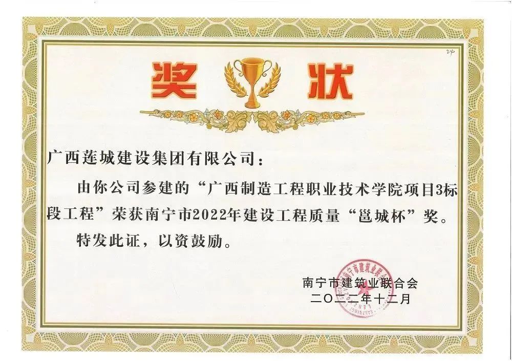 喜訊|集團(tuán)公司多個(gè)項(xiàng)目榮獲南寧市和貴港市建設(shè)工程最高質(zhì)量獎(jiǎng)!