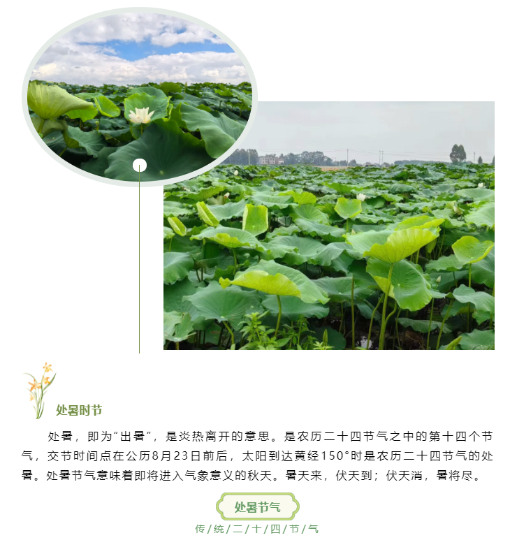 處暑,即為“出暑”,是炎熱離開(kāi)的意思。是農(nóng)歷二十四節(jié)氣之中的第十四個(gè)節(jié)氣,交節(jié)時(shí)間點(diǎn)在公歷8月23日前后...