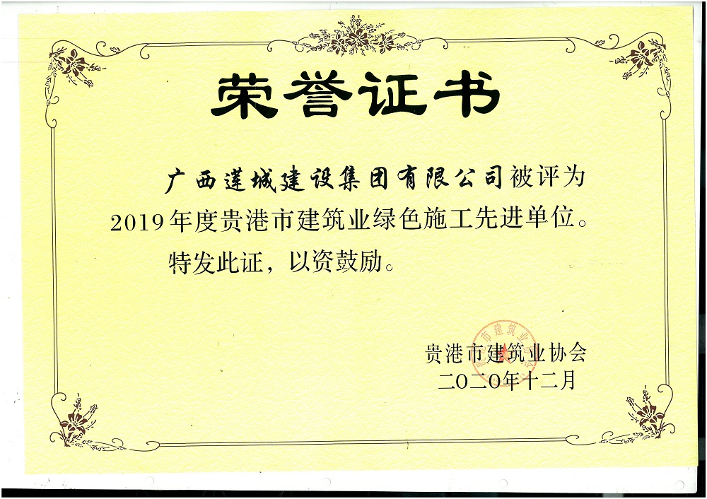 貴港市建筑業(yè)質(zhì)量安全管理優(yōu)秀企業(yè)