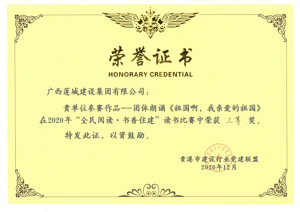 2020年團體朗誦《祖國啊,我親愛的祖國》榮獲三等獎