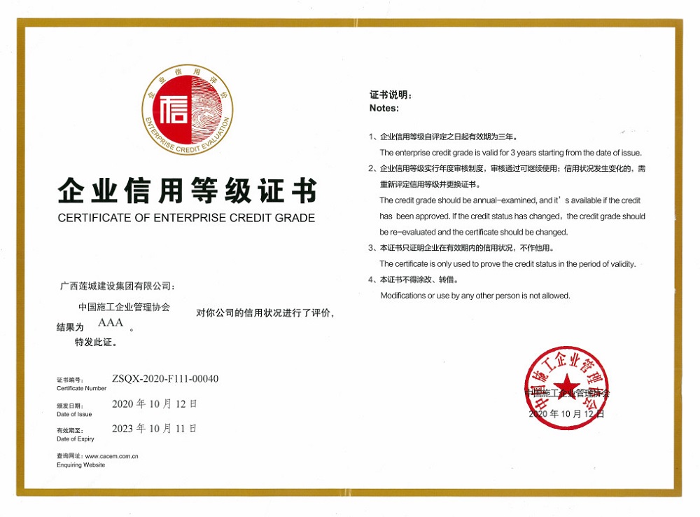 2020年-2023年中國企業(yè)信用等級證書AAA級