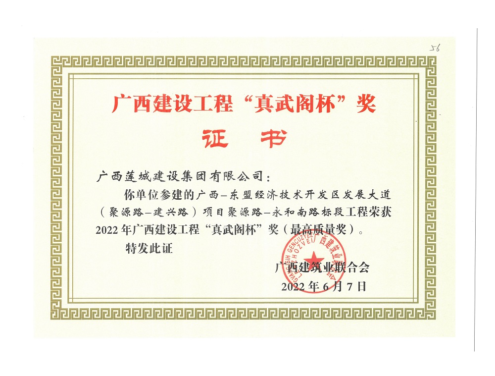 2022年廣西建設(shè)工程“真武閣杯”獎(jiǎng)(最高質(zhì)量獎(jiǎng))廣西-東盟經(jīng)濟(jì)技術(shù)開(kāi)發(fā)區(qū)發(fā)展大道(聚源路-建興路)項(xiàng)目聚源路-永和南路標(biāo)段工程
