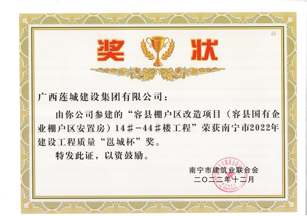 南寧市2022年建設(shè)工程質(zhì)量“邕城杯”獎(jiǎng)