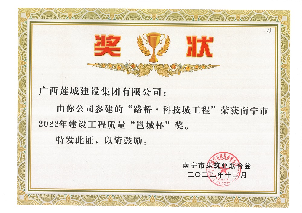 2022年建設(shè)工程質(zhì)量“邕城杯”獎(jiǎng)路橋.科技城工程