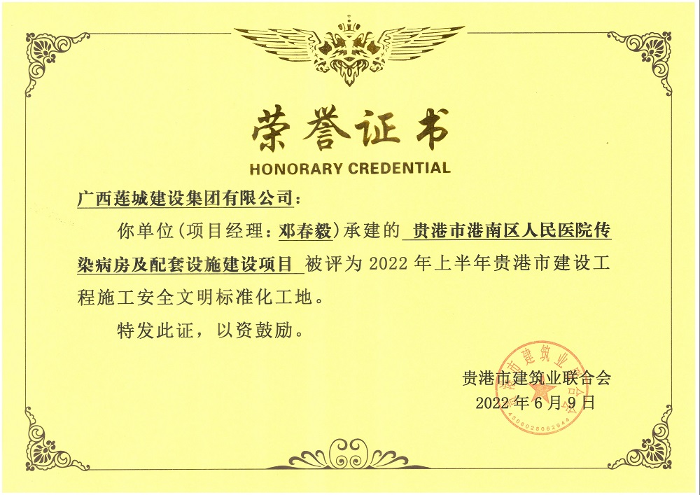 2022年上半年貴港市建設(shè)工程施工文明標(biāo)準(zhǔn)化工地貴港市港南區(qū)人民醫(yī)院傳染病房及配套設(shè)施建設(shè)項(xiàng)目,項(xiàng)目經(jīng)理:鄧春毅
