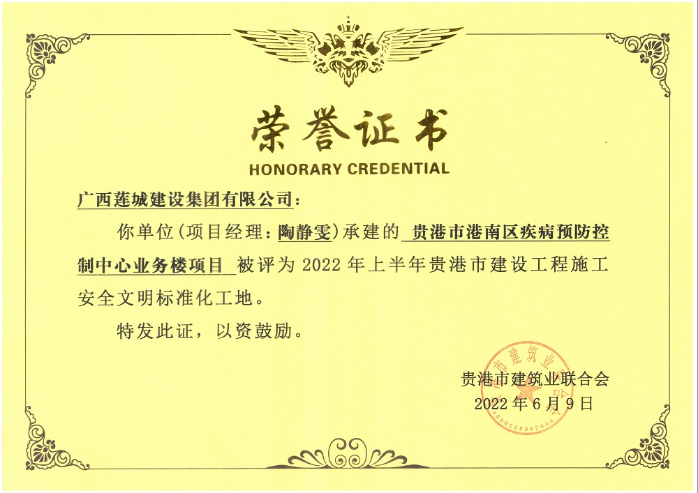 2022年上半年貴港市建設(shè)工程施工文明標(biāo)準(zhǔn)化工地貴港市港南區(qū)疾病預(yù)防控制中心業(yè)務(wù)樓項(xiàng)目,項(xiàng)目經(jīng)理:陶靜雯
