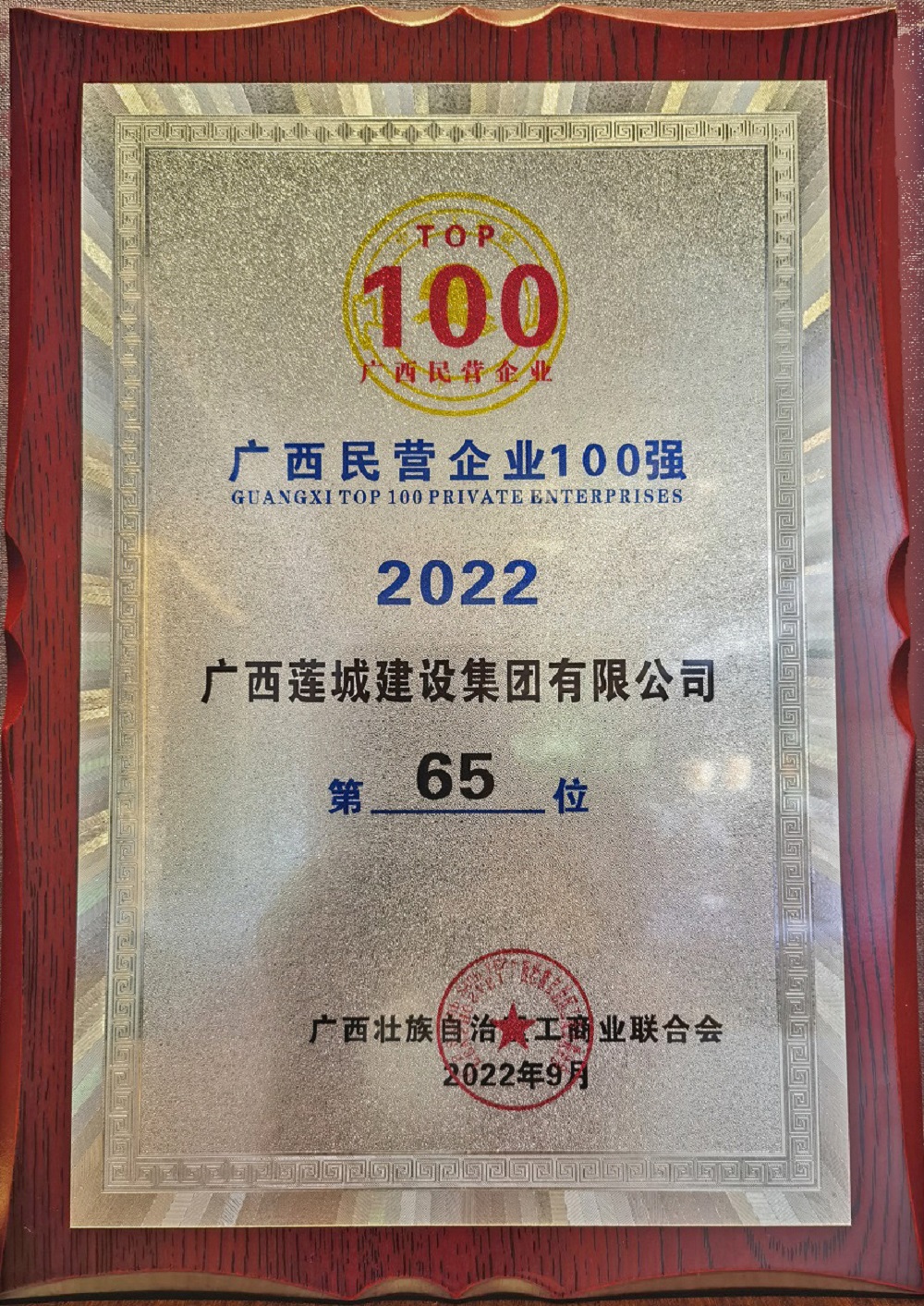 2022年廣西民營(yíng)企業(yè)100強(qiáng),第65位