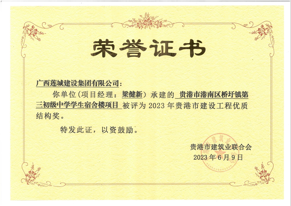貴港市港南區(qū)橋圩鎮(zhèn)第三初級(jí)中學(xué)學(xué)生宿舍樓項(xiàng)目,項(xiàng)目經(jīng)理:梁健新