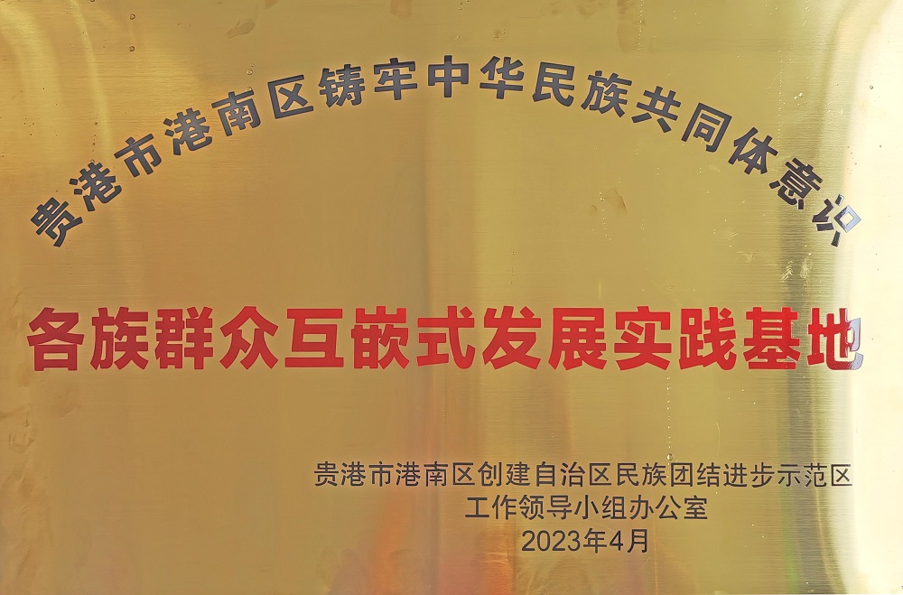 貴港市港南區(qū)鑄牢中華民族共同體意識(shí)各族群眾互嵌式發(fā)展實(shí)踐基地,牌匾