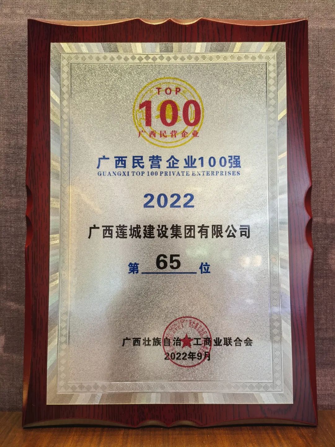 9月6日上午,“2022廣西民營企業(yè)100強(qiáng)”發(fā)布會在柳州召開。會上,廣西工商聯(lián)發(fā)布了“2022廣西民營企業(yè)100強(qiáng)”“2022廣西民營企業(yè)制造業(yè)100強(qiáng)”等榜單。廣西蓮城建設(shè)集團(tuán)有限公司以優(yōu)異的成績?nèi)脒x2022廣西民營企業(yè)100強(qiáng)第65位!