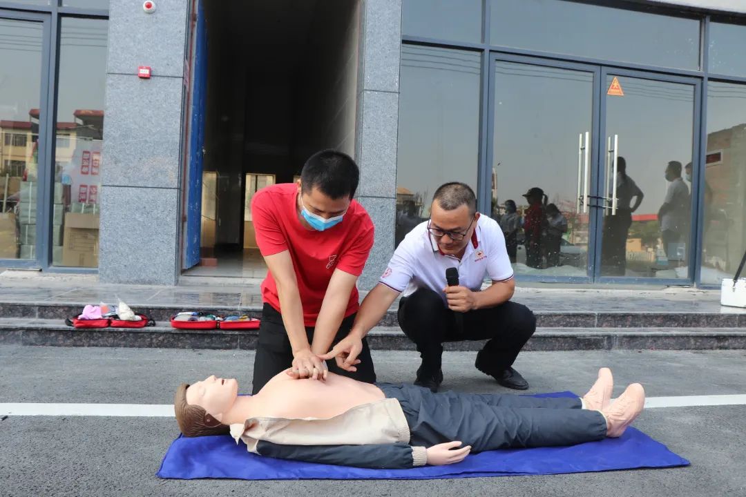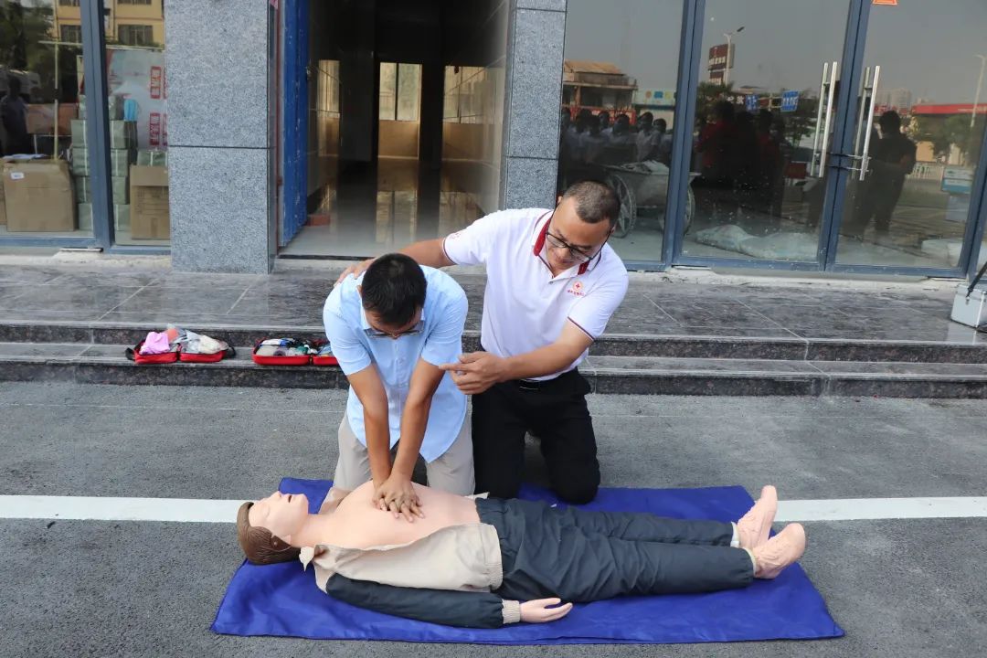 本次活動分為兩個階段。第一階段,港南區(qū)紅十字會對公司全員進(jìn)行應(yīng)急救護(hù)技能培訓(xùn)。實(shí)操過程中,老師一邊念著“口訣”,一邊通過“模擬人”向大家演示心肺復(fù)蘇術(shù)、人工呼吸法等緊急救護(hù)技術(shù),提醒大家要根據(jù)被救者的實(shí)際情況進(jìn)行施救,避免造成“二次傷害”?,F(xiàn)場的員工認(rèn)真聆聽,并積極參與到心肺復(fù)蘇術(shù)實(shí)操演練中,有不規(guī)范的動作老師立即手把手進(jìn)行了指導(dǎo)和糾正。