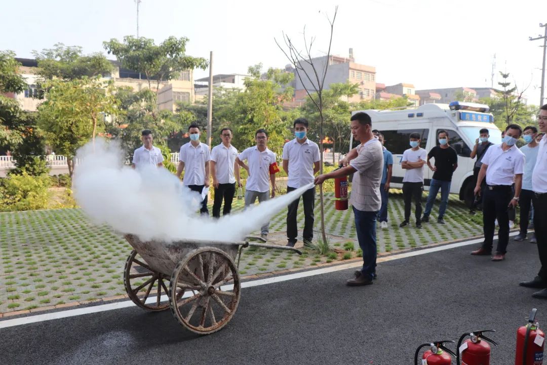 第二階段,由副總指揮黃志剛現(xiàn)場演示了消防器材的正確使用方法、撲救初期火災(zāi)方式及相關(guān)注意事項(xiàng),并組織員工體驗(yàn)現(xiàn)場滅火過程。