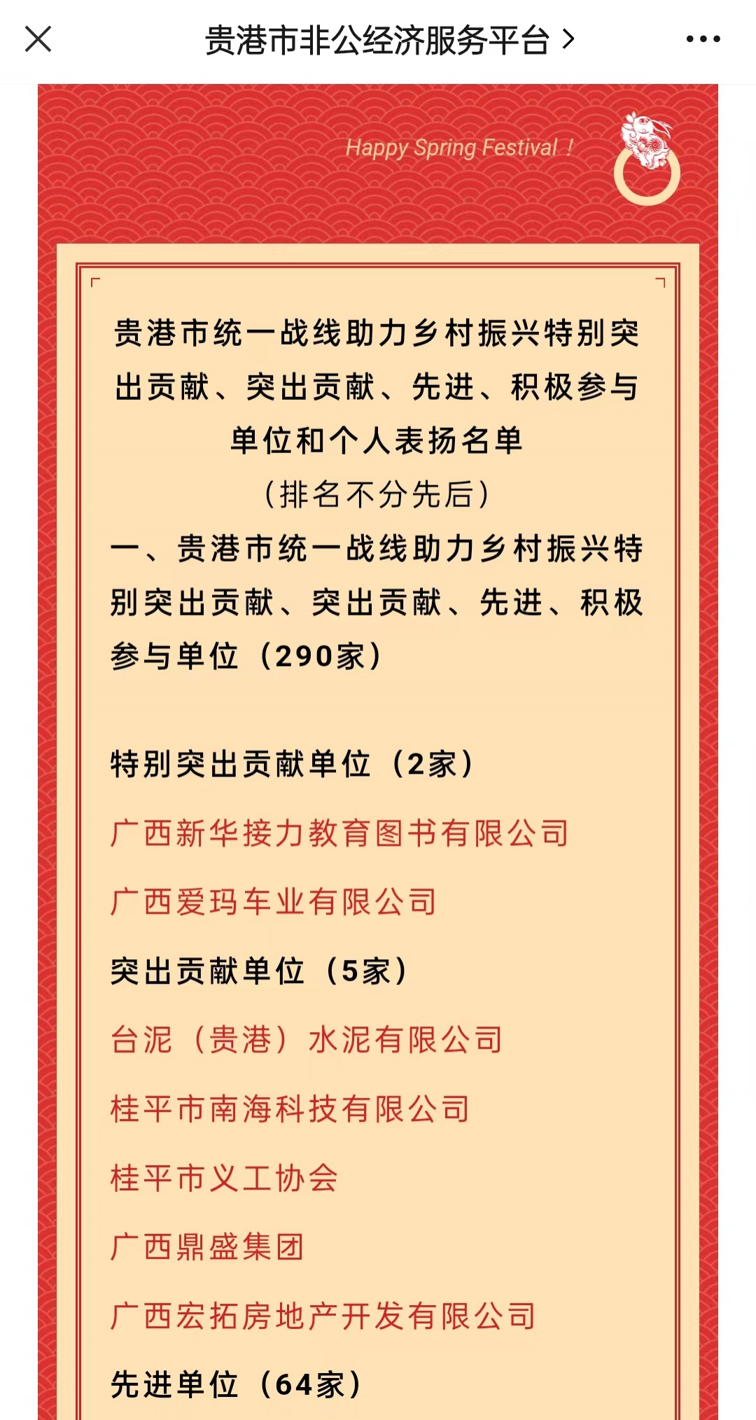 今天是農(nóng)歷癸卯年正月初七,我們獲得了中共貴港市委統(tǒng)戰(zhàn)部、貴港市工商業(yè)聯(lián)合會、貴港市光彩事業(yè)促進會對公司及陳夢華總經(jīng)理的通報表揚,對蓮城建設(shè)集團及陳夢華總經(jīng)理多年以來一直踴躍參與“萬企興萬村”行動、“千企聯(lián)千村 共建新農(nóng)村”活動,通過安置就業(yè)、發(fā)展產(chǎn)業(yè)、助學濟困、捐款捐物等,為貴港市鄉(xiāng)村振興作出的重要貢獻給予肯定及嘉獎!