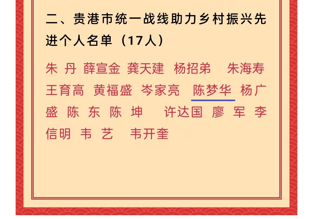 貴港市統(tǒng)一戰(zhàn)線助力鄉(xiāng)村振興先進個人