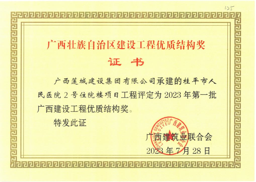 近日,廣西建筑業(yè)聯(lián)合會(huì)公布了2023年第一批廣西壯族自治區(qū)建設(shè)工程優(yōu)質(zhì)結(jié)構(gòu)獎(jiǎng)工程名單,集團(tuán)公司承建的6個(gè)項(xiàng)目榜上有名。