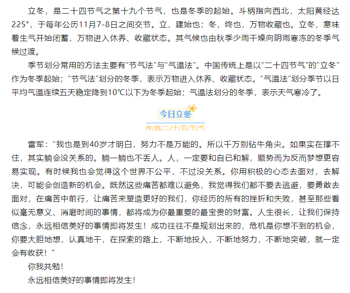 今日立冬|永遠(yuǎn)相信美好的事情即將發(fā)生!