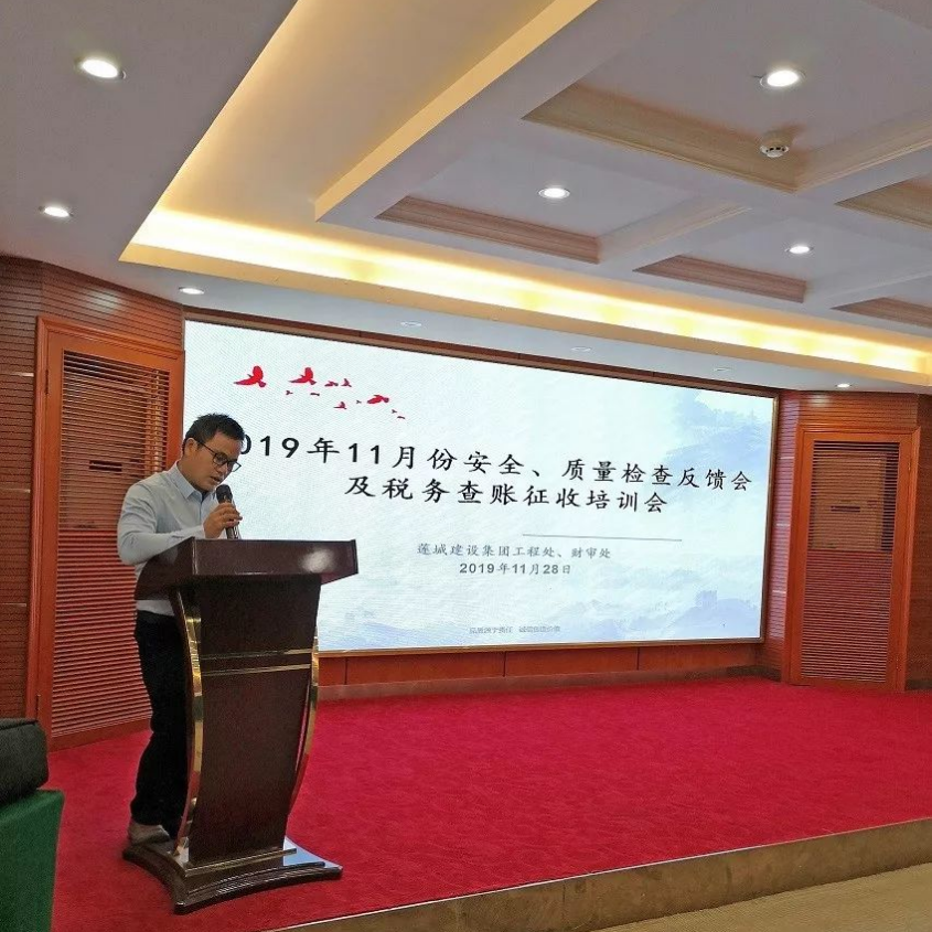 工程處莫若毅副處長隨后對十一月份公司質(zhì)量管理工作進(jìn)行詳細(xì)總結(jié)和質(zhì)量通病問題培訓(xùn)。“2020年稅務(wù)查賬征收培訓(xùn)”則由公司財(cái)審處黃小東副處長作了詳細(xì)展開。