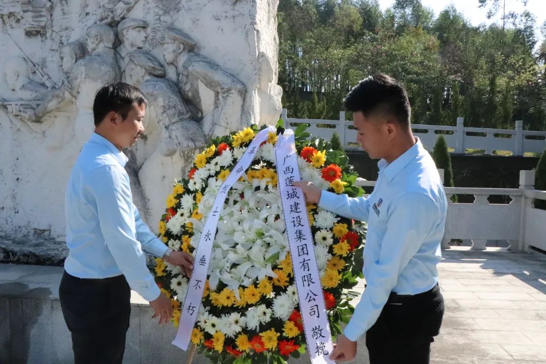 中秋起義紀念碑園蒼松挺拔,莊嚴肅穆。集團公司全體員工肅立,奏唱中華人民共和國國歌,默哀,向革命先烈敬獻花圈。