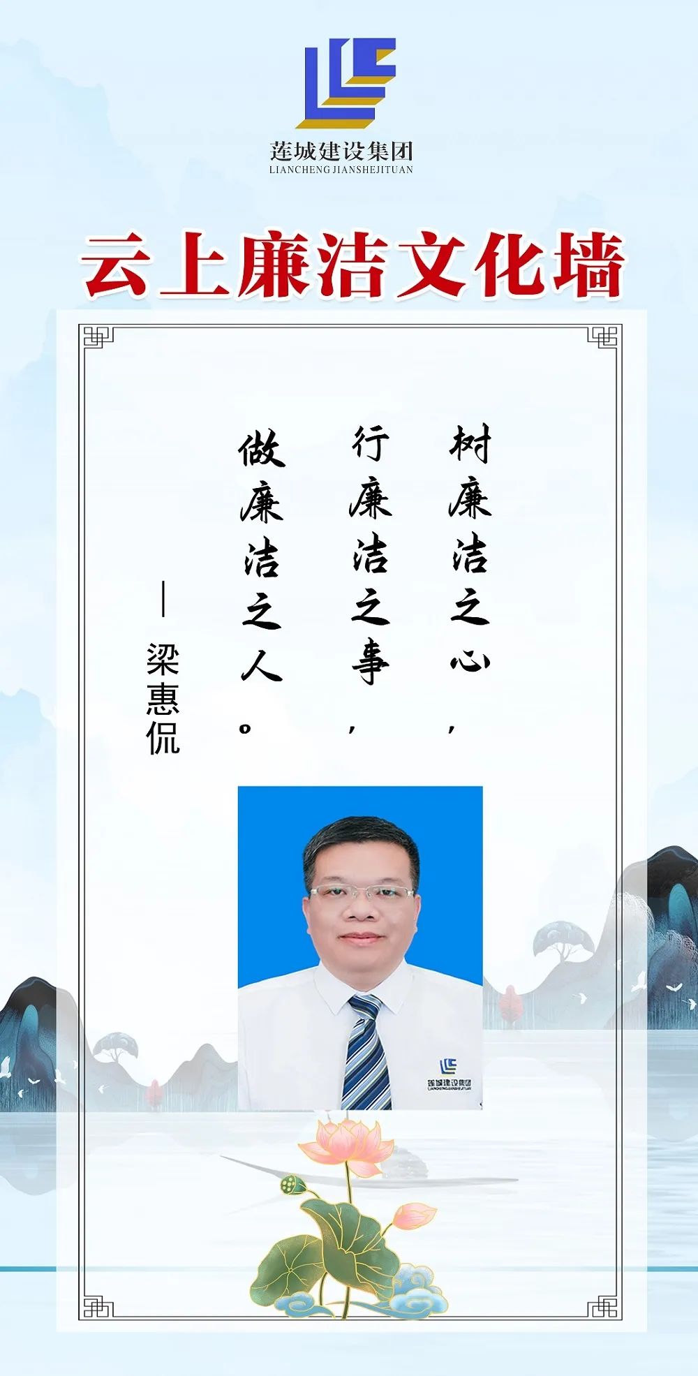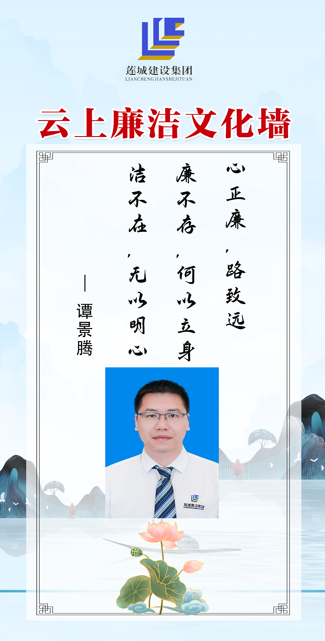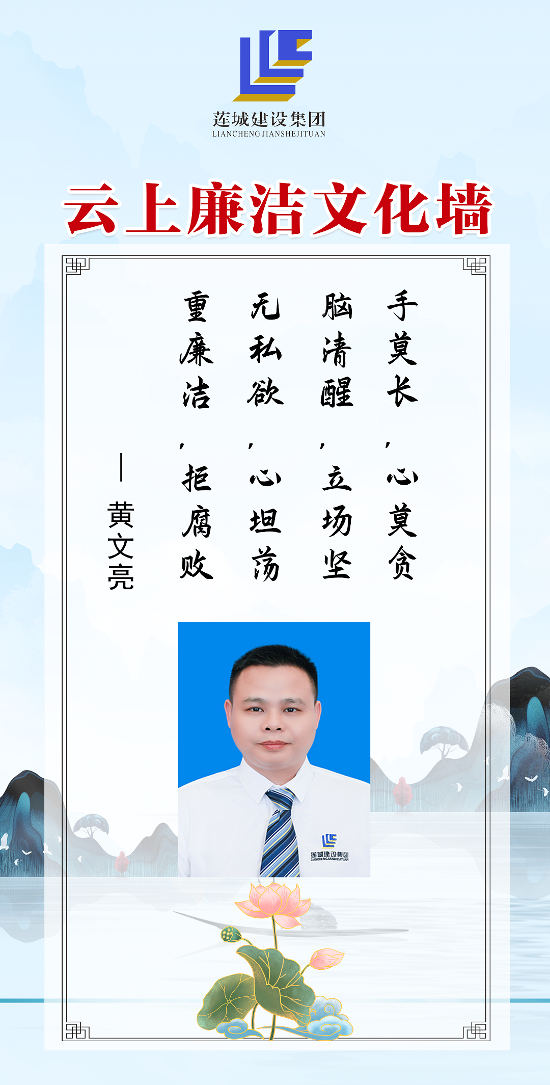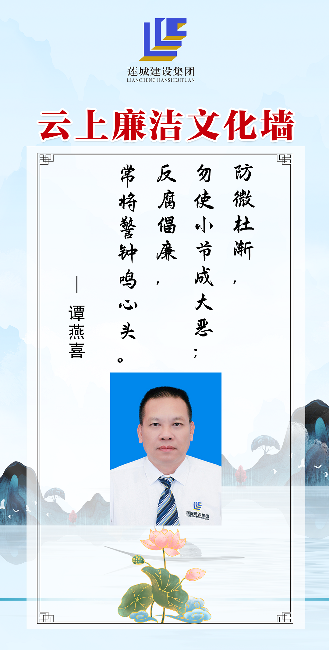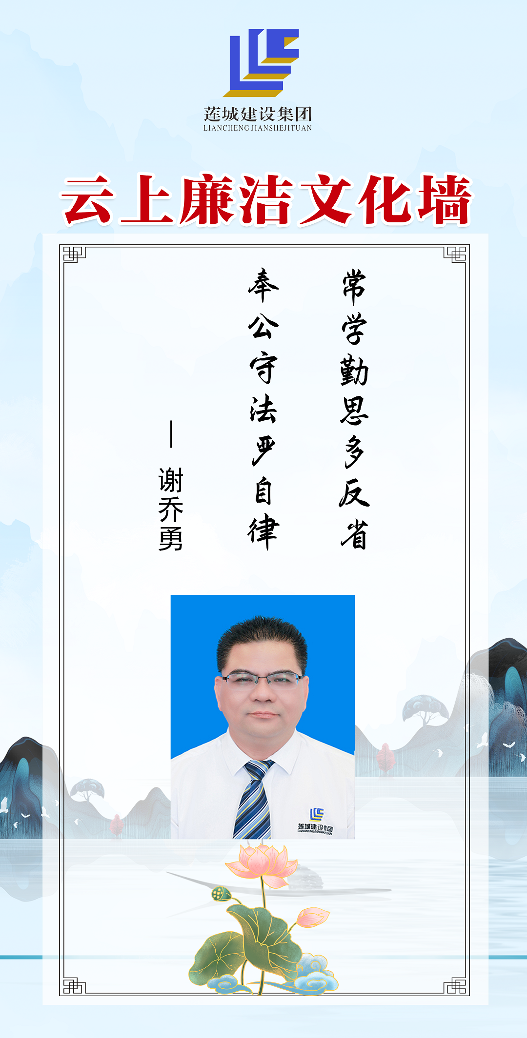 公司領導班子成員以圖文、自述的方式,展現(xiàn)蓮城人積極向上、廉潔自律的精神風貌,進一步營造風清氣正、廉潔自律的良好工作氛圍。