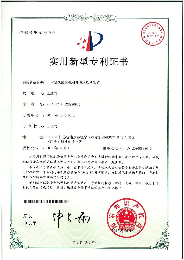 (一種建筑攪拌機用升降式均料裝置)實用新型專利證書(一種建筑膩子攪拌用出料結(jié)構(gòu))實用新型專利證書(一種建筑施工防墜落架)實用新型專利證書(一種建筑外架板)實用新型專利證書(一種建筑外架對接件)實用新型專利證書(一種六邊形防震建筑結(jié)構(gòu)架)實用新型專利證書(外套結(jié)構(gòu)梁柱節(jié)點和原結(jié)構(gòu)梁柱節(jié)點連接結(jié)構(gòu)的施工...