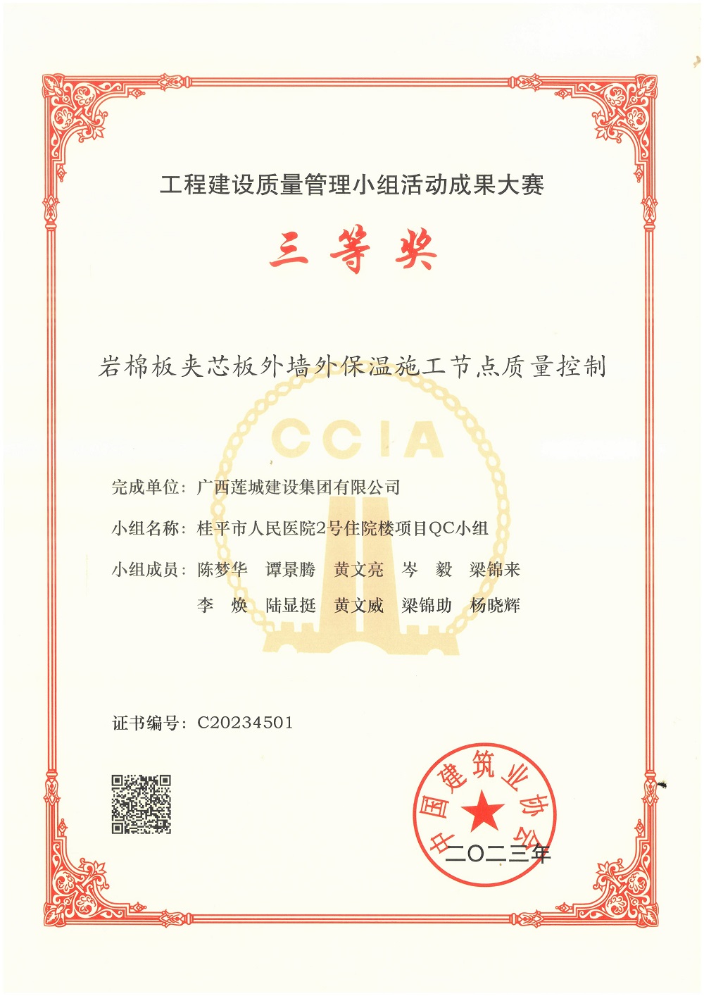 巖棉板夾芯板外墻外保溫施工節(jié)點質(zhì)量控制,QC三等獎,桂平市人民醫(yī)院2號住院樓項目