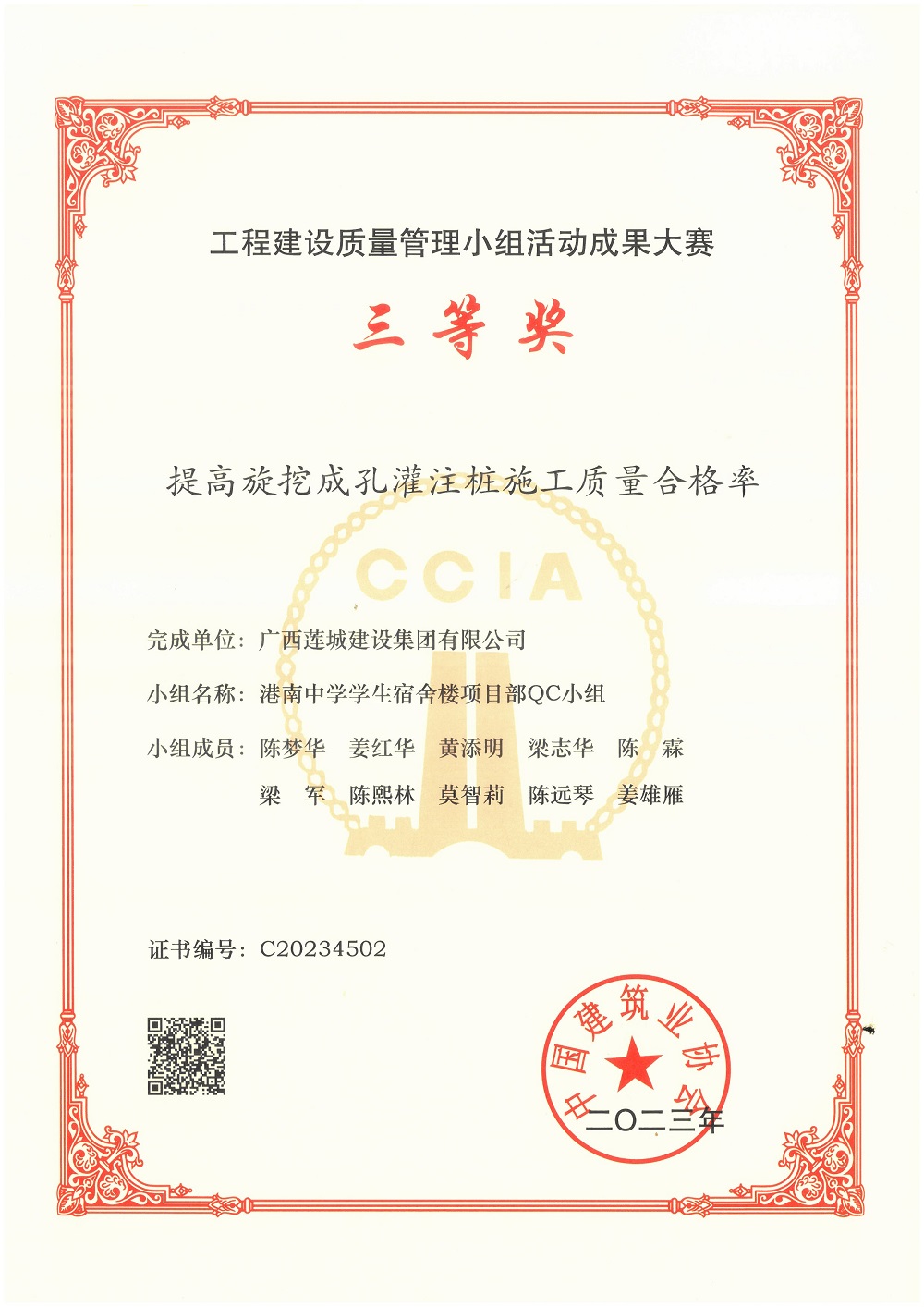 提高旋挖成孔灌注樁施工質(zhì)量合格率,QC三等獎,港南中學(xué)學(xué)生宿舍樓項目部